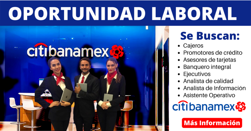 Es una empresa con más de dos siglos de experiencia en el mercado ya que surge a partir de la unión de Banamex y el Banco Mercantil Mexicano. Con una inversión de más de 25 mil millones en tecnología busca expandirse de forma global y lograr una mejor forma de interactuar con los clientes sin perder el compromiso y la misión de la empresa la cual es ofrecerte productos y servicios financieros altamente confiables y de manera responsable para que cubras tus necesidades y ser tu aliado en tu desarrollo económico. Aquí se presentan las principales vacantes que tiene Citibanamex y cuales son los requisitos a cubrir para aplicar a las vacantes, consulta si cumples con ellos y al finalizar de leer el articulo encontraras como puedes participar en la convocatoria.